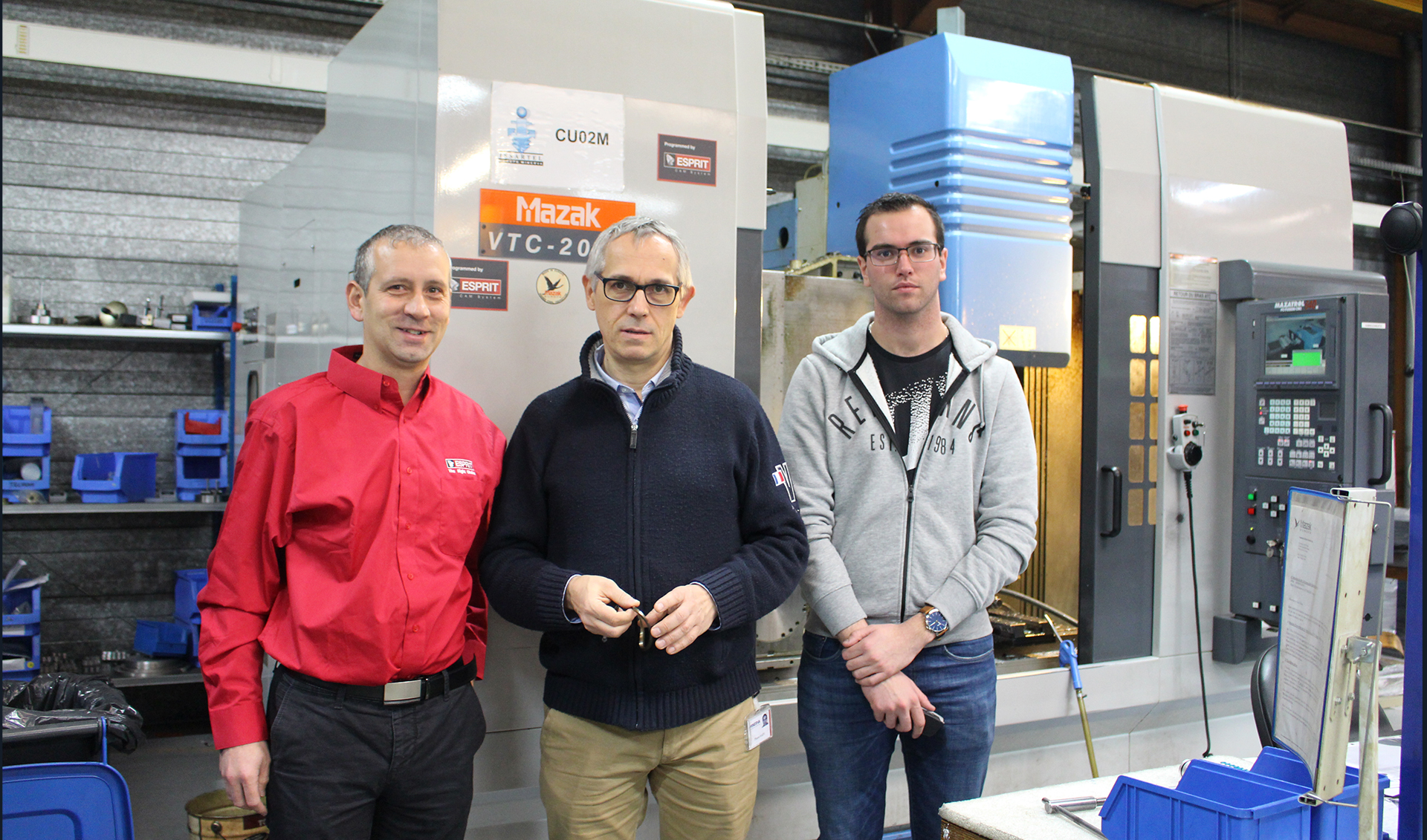 Patrick Gaspard, Mhac Technologies ; Pierre Saby, Issartel et Aurélien Puppo, Issartel devant le centre d’usinage Mazak